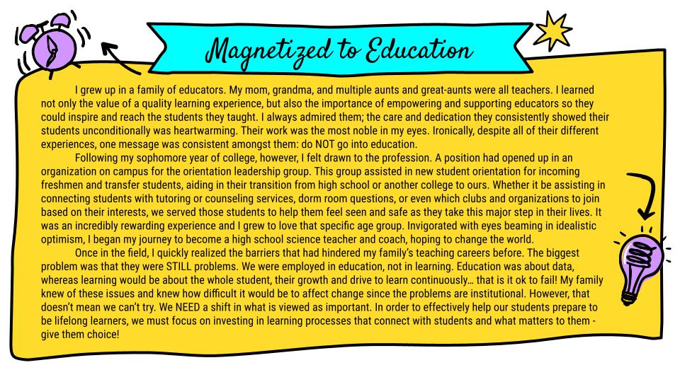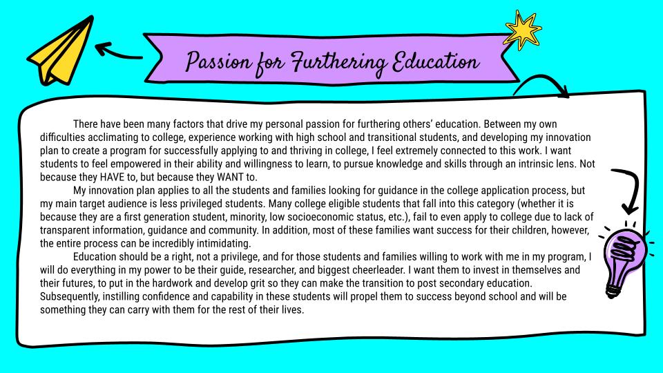 My Learning Manifesto explores my background, my passion for furthering education, and how I aim to implement change to achieve my goals with my innovation plan. Learn more about my innovation plan here!